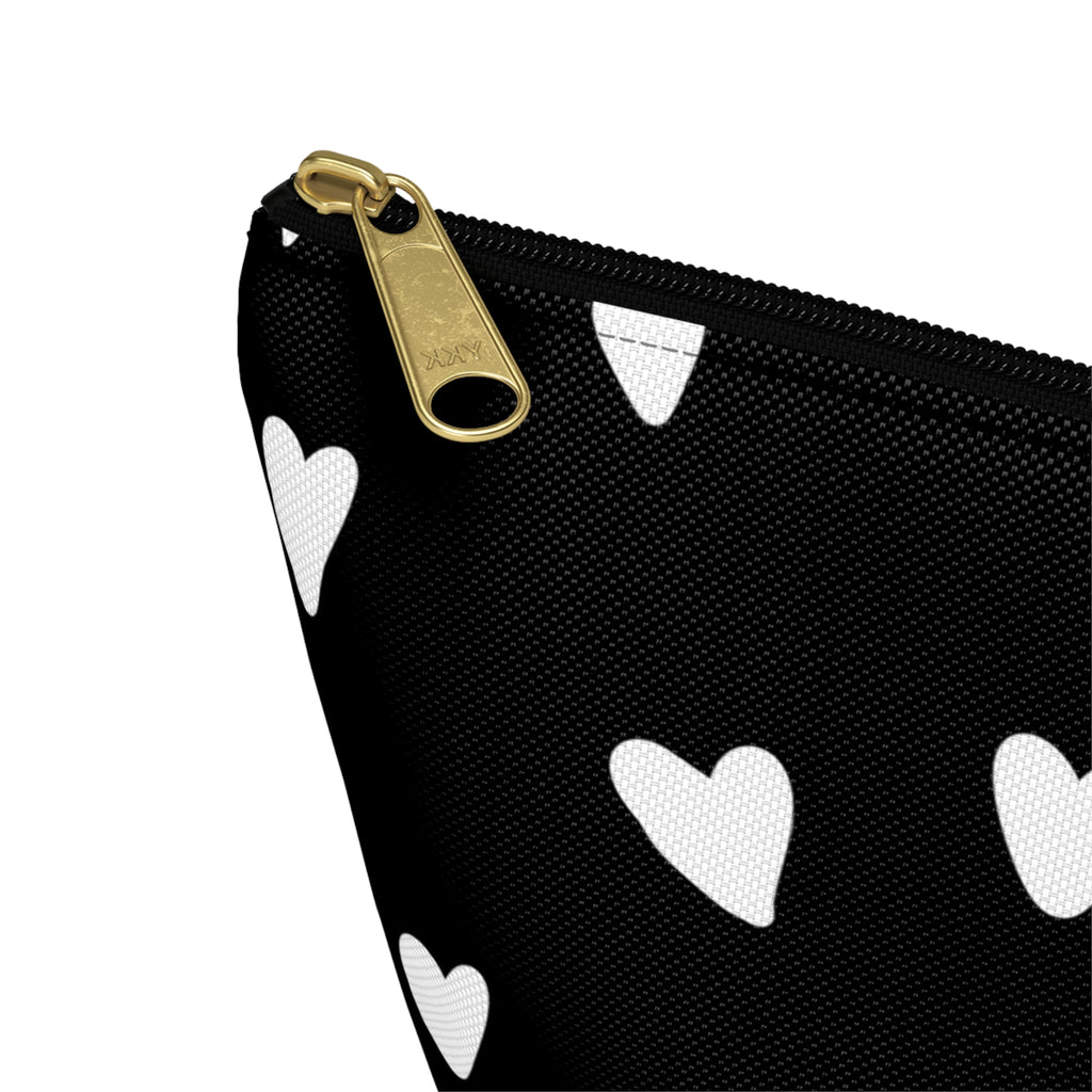 Pouch has a matching durable zipper closure with a gold color puller. The direction of the zipper may vary from order to order