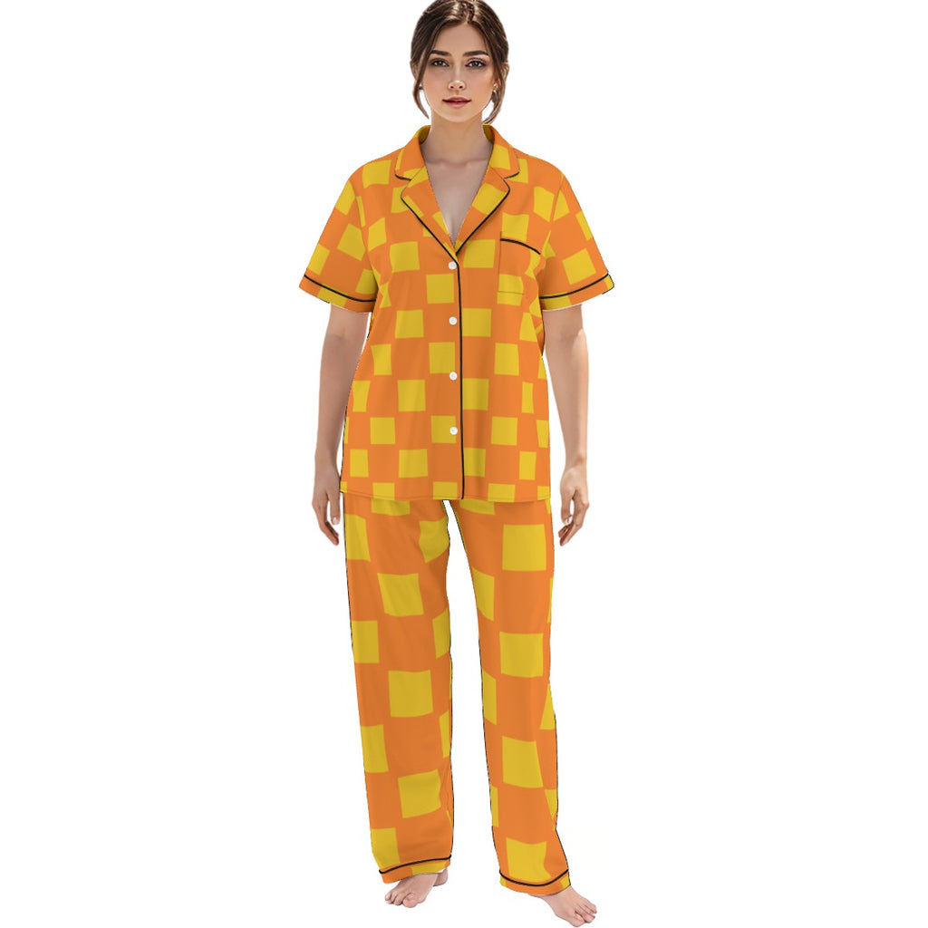 Comfortable and elegant, this women's pajama set is made of soft and skin-friendly simulated silk fabric, allowing you to feel comfortable even in your dreams. The black contrast piping not only adapts to any color but also highlights your elegant temperament.