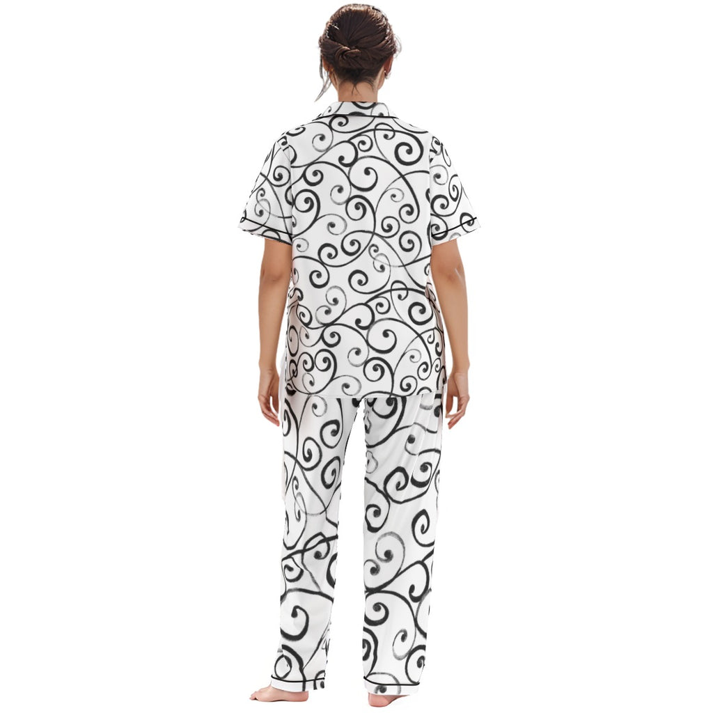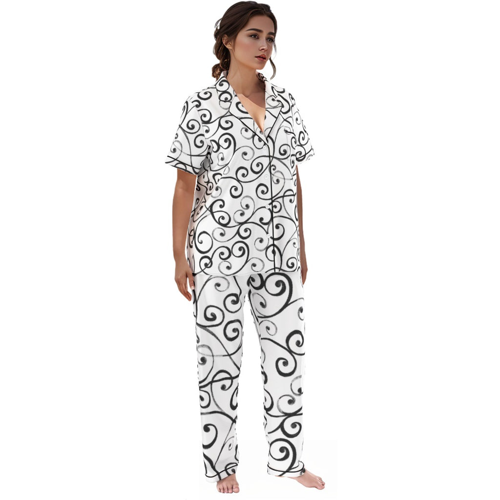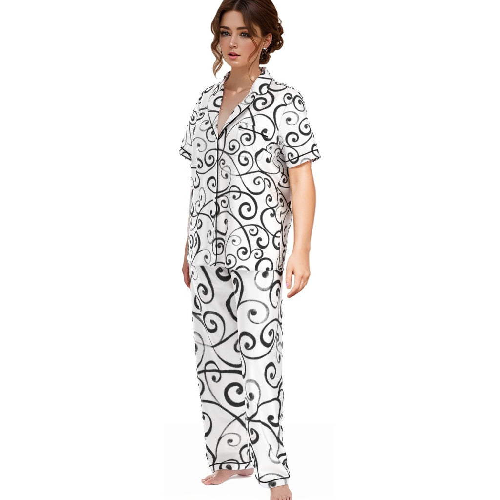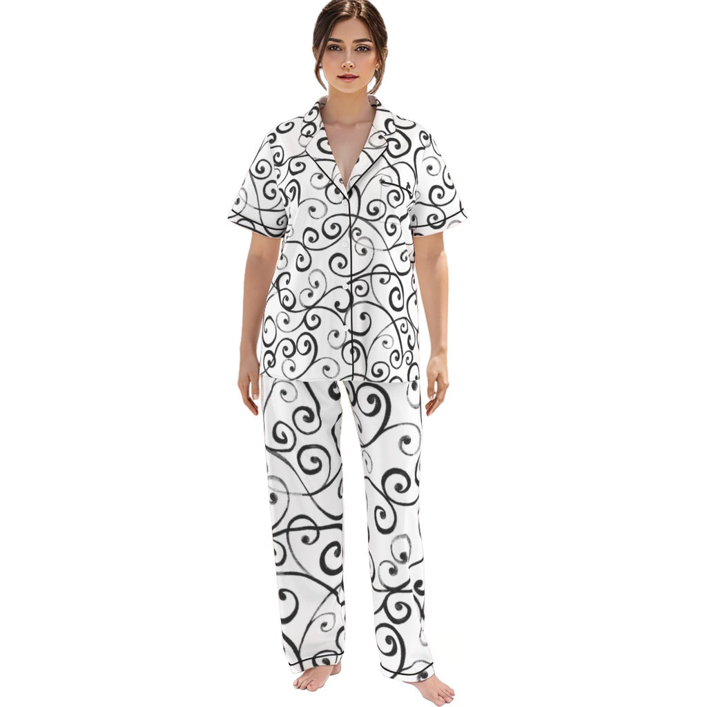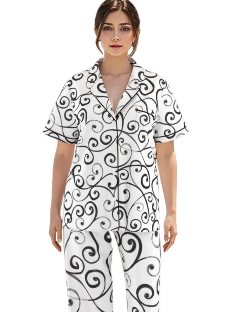 Comfortable and elegant, this women's pajama set is made of soft and skin-friendly simulated silk fabric, allowing you to feel comfortable even in your dreams. The black contrast piping not only adapts to any color but also highlights your elegant temperament.
