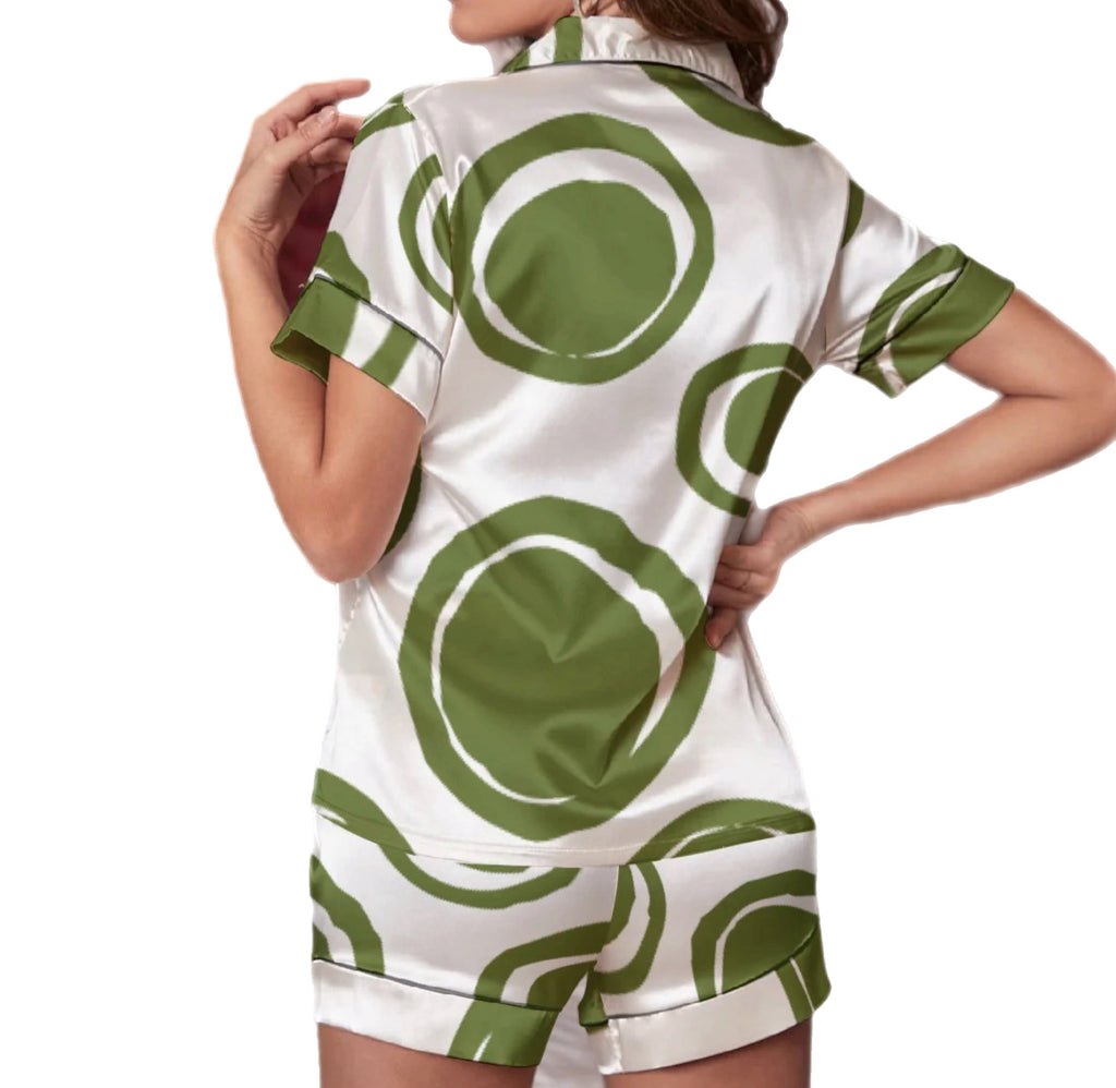 Green Abstract Short Pj Set