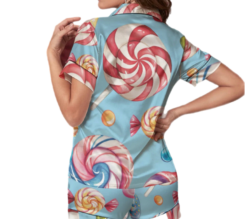 - Women's pajama set, short sleeve, splice edge, with button closure, with chest pocket