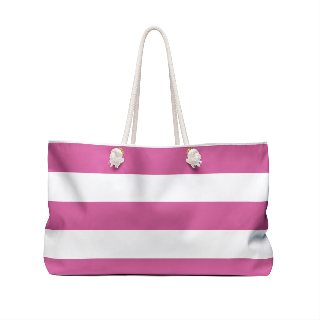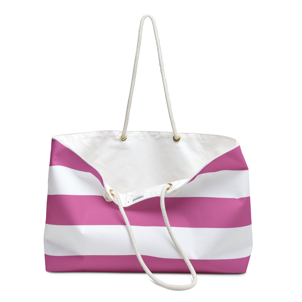 Our oversized Weekender Tote is perfect for your weekend at the beach or in town. The wide-mouthed, durable bag holds a generous amount of personal items and is easily held by its thick rope handles.