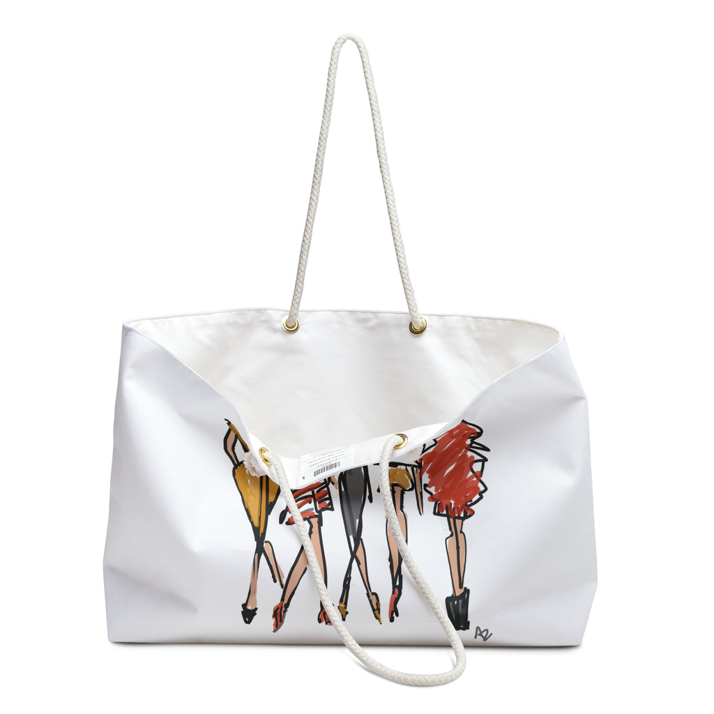 Our oversized Weekender Tote is perfect for your weekend at the beach or in town. The wide-mouthed, durable bag holds a generous amount of personal items and is easily held by its thick rope handles.